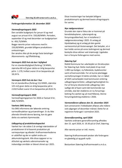Støvring Kraftvarmeværk informerer om priser for 2025 og 2026. Vi ønsker alle en glædelig jul og et godt nytår